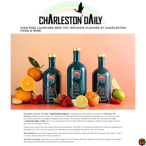 Charleston, SC (DEC. 18, 2025, 2025) – Mix things up and raise your spirits with new THC Infusions from High Rise Beverage Co. Perfect for mixing a hightail or drinking on the rocks, High Rise’s unique THC Infusions elevate every occasion with big citrus flavor and a feel-good buzz.